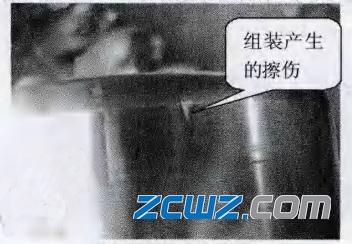 新轴承常见故障有以下几种现象:铆钉锈蚀松动、滚柱有擦伤、保持架有擦伤和毛刺清理不干净,如下图6-9所示